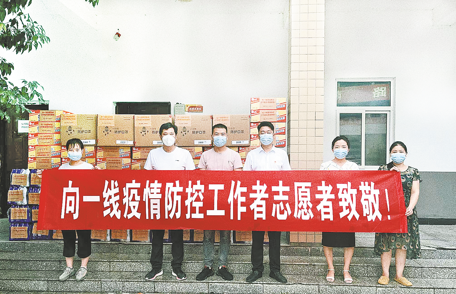 8月23日,商南縣卡之卡包裝有限公司負(fù)責(zé)人在青山鎮(zhèn)看望慰問(wèn)疫情防控一線工作人員并送去慰問(wèn)品。本輪疫情發(fā)生以來(lái),我市不少愛(ài)心企業(yè)紛紛伸出援手,踴躍捐贈(zèng)善款及抗疫物資,以實(shí)際行動(dòng)為抗擊疫情貢獻(xiàn)力量。 (本報(bào)通訊員 馬 艷 攝)