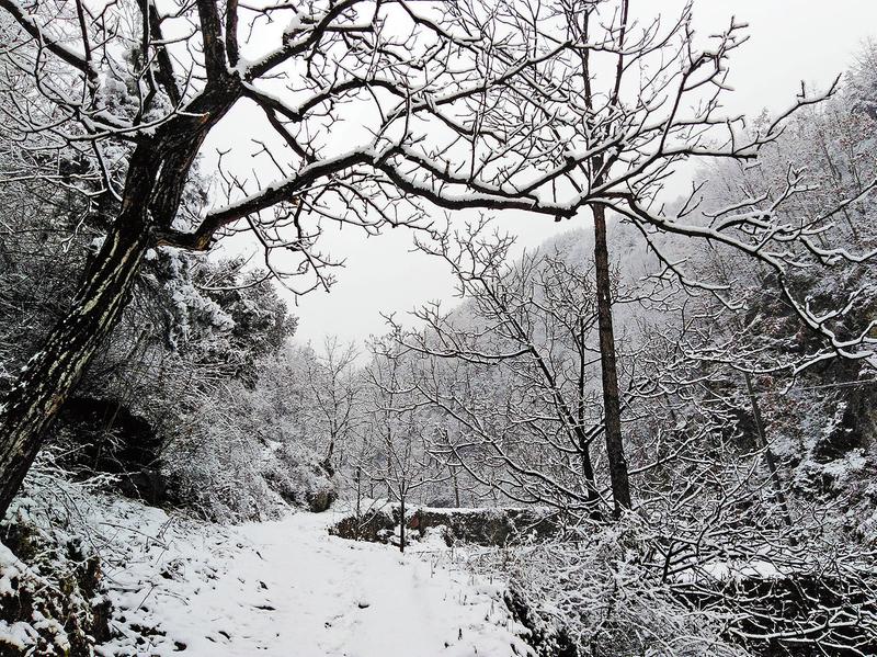 山路上的腳印,說(shuō)明仍有勤勞的村民冒雪進(jìn)山
