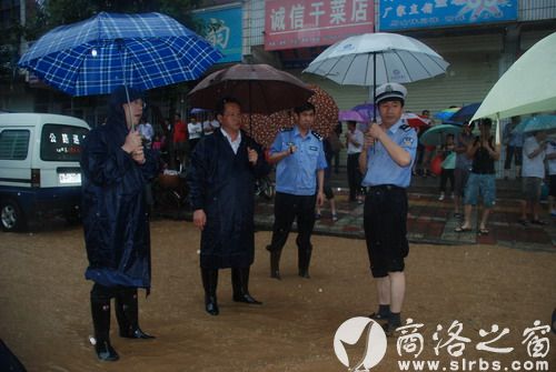 縣委書記雷雨(左二)、縣長陸邦柱(左一)冒雨指揮居民轉(zhuǎn)移