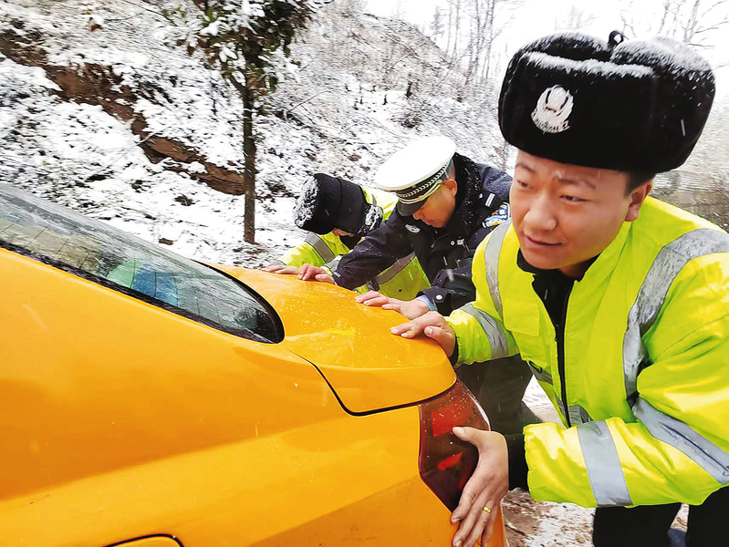 柞水縣交管大隊紅巖寺中隊民警全員上路,為群眾安全出行保駕護航。 (本報記者 李小龍 攝)