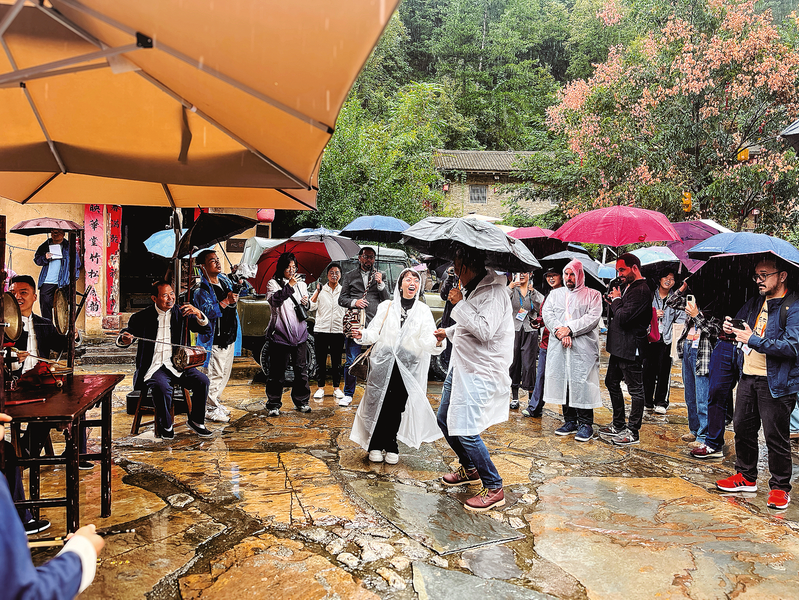 在國家級非遺“洛南靜板書”小劇場前,拉美詩人跟著婉轉(zhuǎn)綿長的旋律起舞。