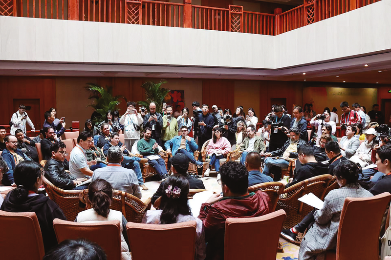 2025國際青春詩會期間,中拉詩人們圍坐在一起,朗誦分享自己的詩歌。