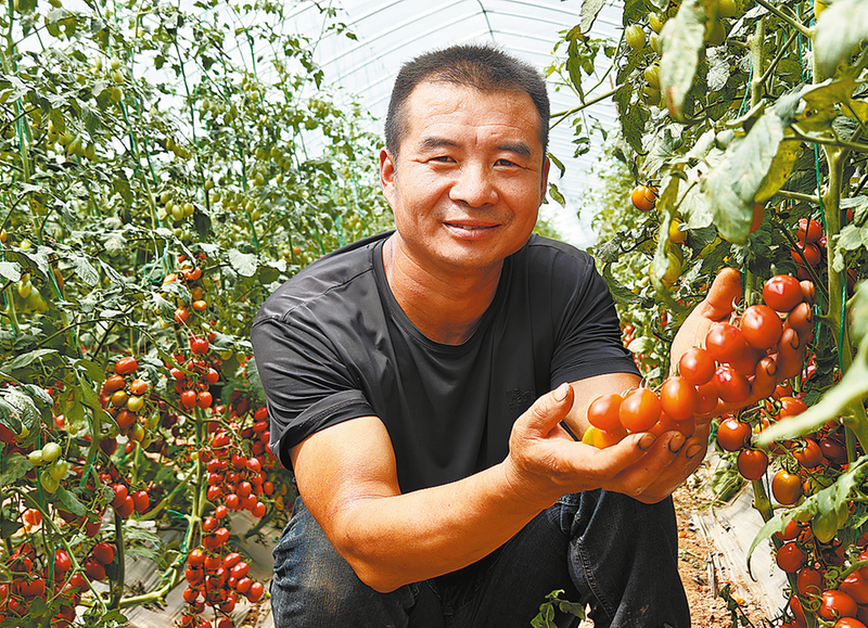 △9月16日,洛南縣四皓街道連河村瓜果種植采摘基地內(nèi),圣女果藤蔓上綴滿了果實(shí),技術(shù)員羅鵬在查看圣女果長勢。