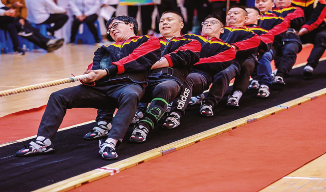 ——第二十三屆全國(guó)拔河(硬地)錦標(biāo)賽側(cè)記本報(bào)記者李小龍王天彤起繩,拉緊,預(yù)備hellip;hellip;隨著裁判的一聲令下,選手們兩腳蹬地、緊握長(zhǎng)繩、重心下沉、身體后仰,在觀眾的加油吶喊聲中全力以赴…