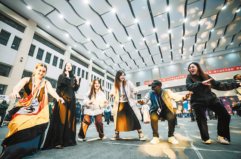 商洛市初級(jí)中學(xué)的操場上,巴西隊(duì)女隊(duì)員主動(dòng)教授排球啦啦操,歡快的南美節(jié)奏與陣陣笑聲交織在一起,大家盡情釋放著熱情與活力。各校精心設(shè)置的非遺展示區(qū)內(nèi),書法、剪紙等體驗(yàn)項(xiàng)目更是吸引了眾多外國小將駐足參與。他們手執(zhí)毛筆一筆一畫書寫漢字,持剪刀小心翼翼剪出圖案,在親身實(shí)踐中感悟中華文化的獨(dú)特韻味。