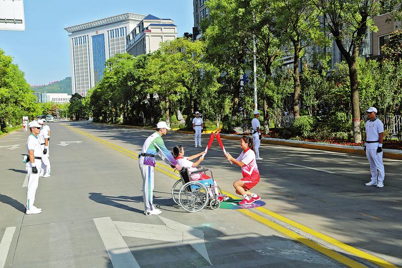 9月10日,中華人民共和國第十四屆運(yùn)動(dòng)會(huì)、中華人民共和國第十一屆殘運(yùn)會(huì)暨第八屆特奧會(huì)火炬?zhèn)鞯降?3站商洛。