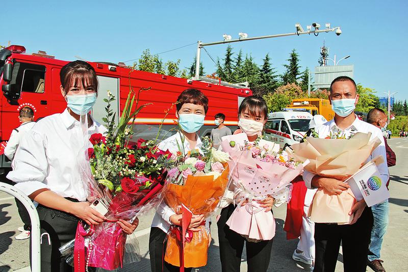 市民準(zhǔn)備為火炬手獻(xiàn)花(記者劉媛攝)