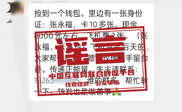謠言:???多地有人撿到錢包、接力轉(zhuǎn)發(fā)“失物招領(lǐng)”信息?