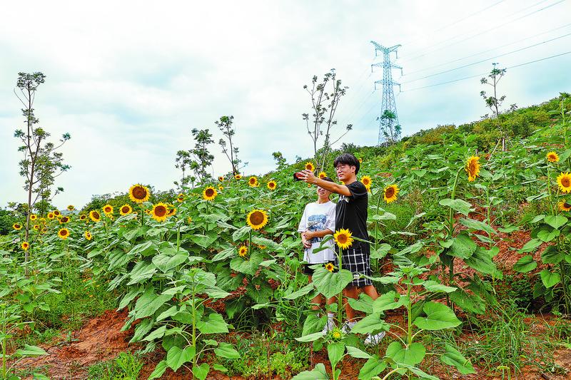 漫步在園區(qū),除了油葵花競相開放,格?;ā⒁熬?、石竹等草本花卉鋪滿路沿地坎,核桃樹上鮮果欲落,呈現(xiàn)出花團(tuán)錦簇、林豐葉茂、果實(shí)累累的生態(tài)美景。5公里的環(huán)山路,鮮花夾道,色彩斑斕。配套建設(shè)的兒童拓展區(qū)、水上娛樂區(qū)、原生態(tài)民宿區(qū)別具一格,林下種植的油葵、連翹、葛根等錯(cuò)峰生長、開花結(jié)果,不僅涵養(yǎng)水源、扮靚風(fēng)景,還具有經(jīng)濟(jì)價(jià)值和帶貧益貧效果。