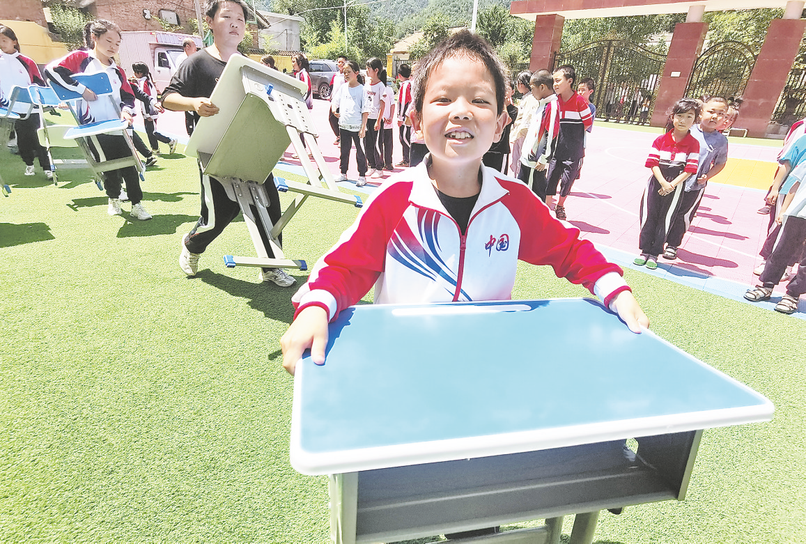 7月8日,商洛彩虹公益中心籌資1萬多元為商州區(qū)牧護(hù)關(guān)鎮(zhèn)劉村小學(xué)更換了老舊的木質(zhì)課桌、座椅,改善孩子們的學(xué)習(xí)環(huán)境。(本報(bào)記者王孝竹攝)…
