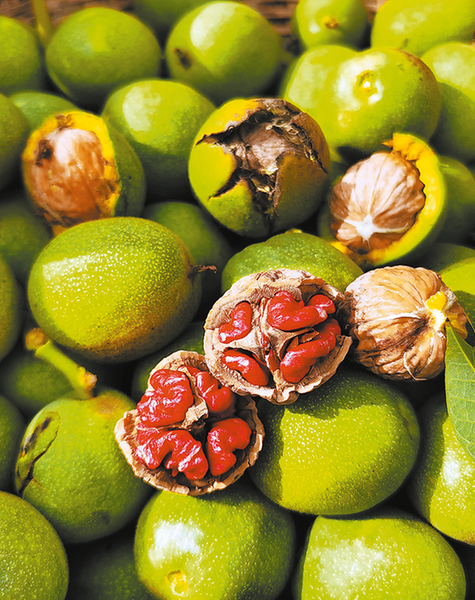 紅仁核桃因其成熟期較晚、避晚霜能力強(qiáng)、豐產(chǎn)性好而深受種植戶的喜愛。紅仁核桃具有仁色鮮紅、營(yíng)養(yǎng)價(jià)值極高、口感酥脆微甜等特點(diǎn),富含花色苷及鞣花單寧,具有抗氧化、抗衰老、抗癌、保護(hù)心血管、調(diào)節(jié)膽固醇、增強(qiáng)免疫力的功效,被人們稱為“核桃中的貴族”,是世界稀有品種。2015年開始,商洛盛大實(shí)業(yè)股份有限公司瞄準(zhǔn)市場(chǎng)機(jī)遇,從美國(guó)加利福尼亞州引種了紅仁核桃品種,開展了系統(tǒng)引種研究取得成功。目前,公司通過土地流轉(zhuǎn)已建成試驗(yàn)田、示范園1820畝。在市、縣政府的大力支持下,采取“政府推動(dòng)、企業(yè)帶動(dòng)、示范引領(lǐng)、效益拉動(dòng)”等推廣模式,通過8年努力,推廣面積達(dá)5萬畝,有力推動(dòng)了核桃產(chǎn)業(yè)升級(jí)換代、提質(zhì)增效。