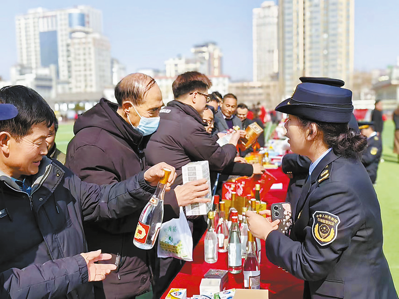 △在民法典宣傳月期間,洛南縣市場(chǎng)監(jiān)管局工作人員向市民介紹假冒偽劣商品鑒別常識(shí),宣傳消費(fèi)者權(quán)益保護(hù)有關(guān)法律法規(guī)。