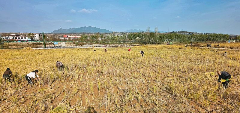 洛南縣保安鎮(zhèn)堅(jiān)持農(nóng)文旅融合,今年該鎮(zhèn)在倉圣社區(qū)洛惠渠下實(shí)施的觀光農(nóng)業(yè)項(xiàng)目水稻示范種植面積達(dá)120余畝,繪就出產(chǎn)業(yè)興、生態(tài)美、村民富的鄉(xiāng)村振興新畫卷。圖為11月3日,保安鎮(zhèn)組織群眾利用晴好天氣收割水稻,確保顆粒歸倉。 (本報(bào)通訊員 楊開讓 攝)