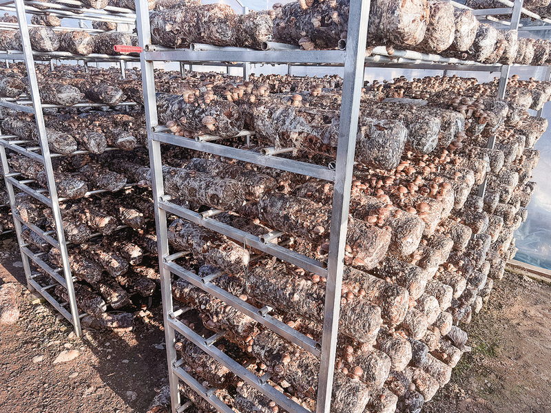 11月19日,在店坊河村香菇種植基地,暖陽下的香菇長勢良好。