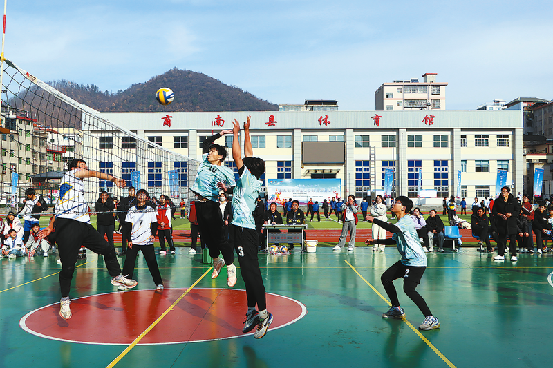 12月16日,“前海開源杯”2025年商南縣青少年排球賽在縣體育場舉行,吸引全縣17支代表隊同臺競技,幫助青少年在運動中強健體魄、磨礪意志。圖為當日男子組比賽現(xiàn)場。 (本報通訊員 李 瀟 攝)