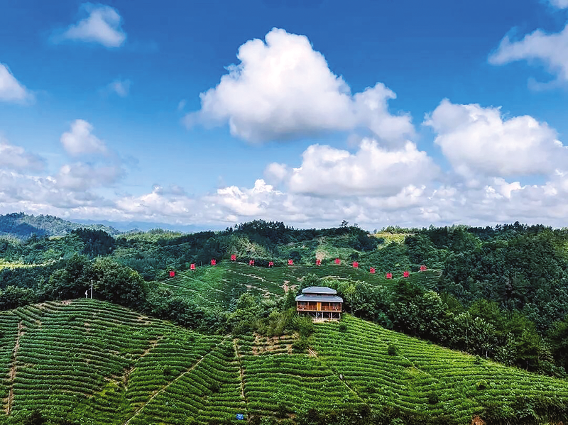晴空下的富水茶海公園,連片茶壟層疊鋪展于山野間,這是商南縣綠色茶產(chǎn)業(yè)與生態(tài)保護(hù)協(xié)同發(fā)展的生動(dòng)縮影。(資料圖片)