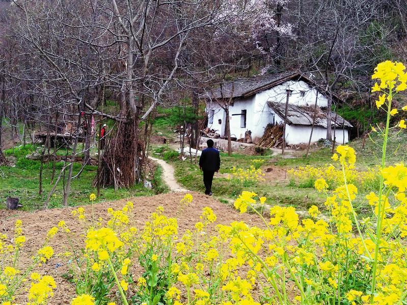 放眼西窯村,山巒層層疊疊,盤繞在山間的通村水泥路如銀鏈環(huán)繞,連接著山里人家。村民在山坡地里采挖菊芋、種植中藥材,空氣里散發(fā)著春天的泥土氣息,金黃的油菜花和連翹花相映生輝,雪白的棠梨花和櫻桃花似一團團白云,柳絲氤氳著一片又一片綠霧,炊煙裊裊,令人賞心悅目。