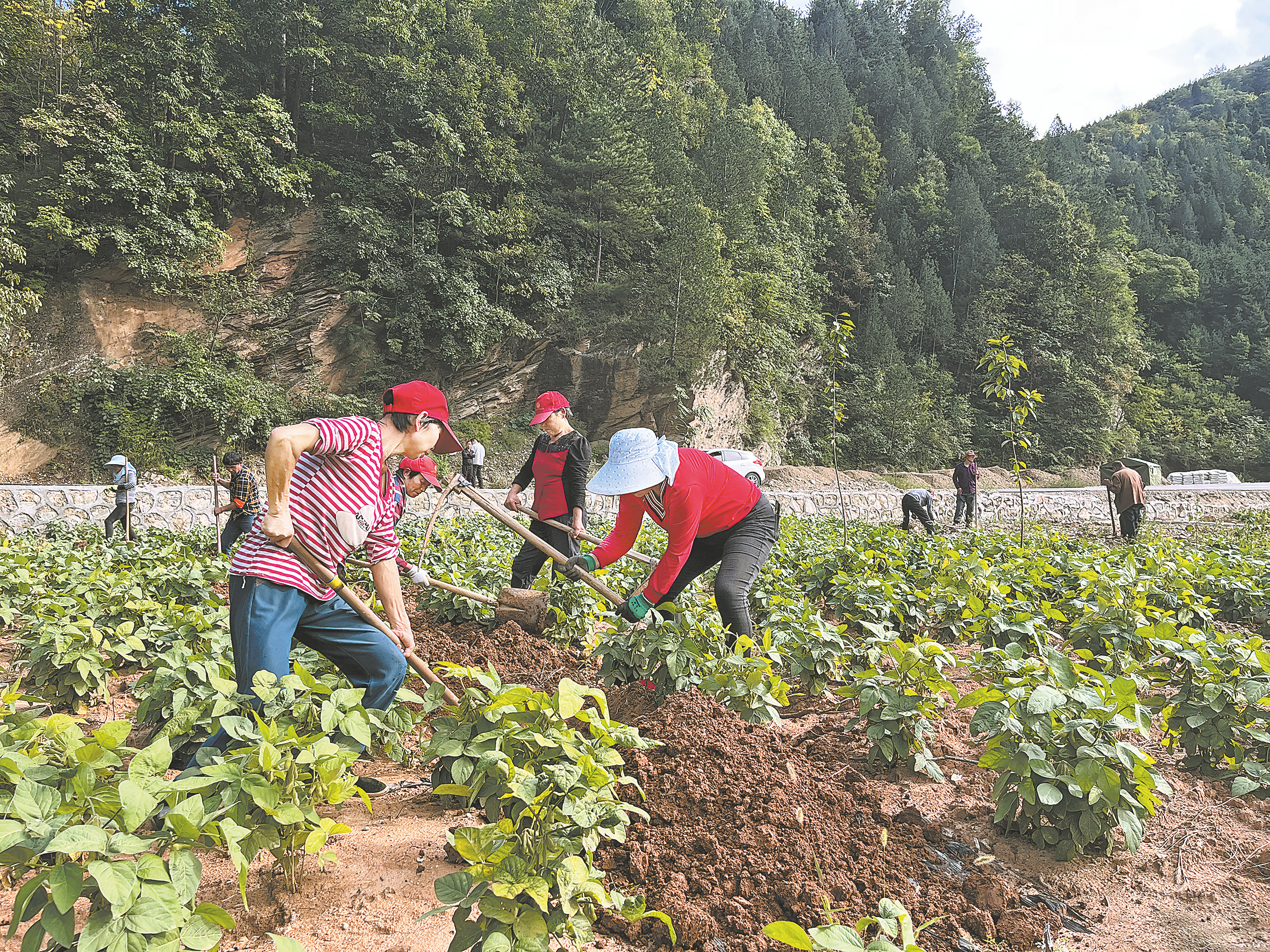 9月26日,商州區(qū)三岔河鎮(zhèn)三星村櫻桃產(chǎn)業(yè)示范園里,工人在田間進(jìn)行土壤管理,為補(bǔ)種櫻桃做好準(zhǔn)備。今年以來,三岔河鎮(zhèn)瞄準(zhǔn)“農(nóng)旅櫻谷·水美三岔河”目標(biāo)定位,依托櫻桃產(chǎn)業(yè)大力發(fā)展集體經(jīng)濟(jì),在果樹外緣套種大豆等作物,持續(xù)帶動(dòng)群眾增收。(本報(bào)記者 黨率航 攝)