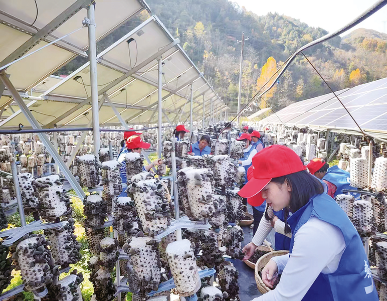 廟溝村的現代農業(yè)產業(yè)還不止香菇。在產業(yè)園北側,一片“農光互補”基地格外吸睛——成排的光伏板下,塔式木耳種植架整齊排列。“棚頂發(fā)電、棚下種植”的模式,年增收21.5萬元,木耳種植畝均效益提升40%。光伏發(fā)電每年為村集體經濟貢獻18萬元收入,板下種植的黑木耳還能再盈利,實現了一塊地兩份收入。