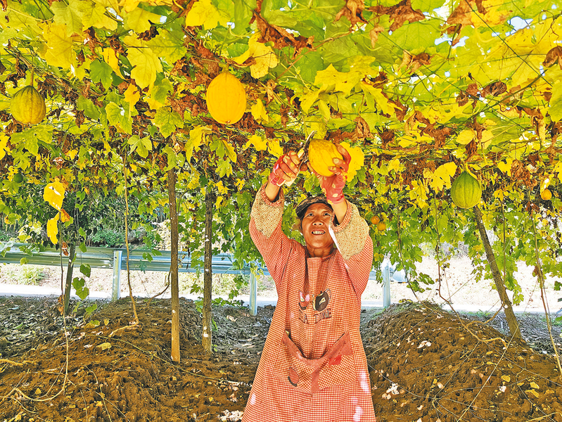 像“黃金葉”一樣喜獲豐收的產(chǎn)業(yè),還有月明村的130畝瓜蔞。來到月明村瓜蔞基地,映入眼簾的是一排排整齊的瓜架,一個個沉甸甸、圓鼓鼓的瓜蔞掛滿枝頭,不僅為鄉(xiāng)村增添了一抹亮麗色彩,更為群眾增收致富、村集體發(fā)展壯大增添了動力。